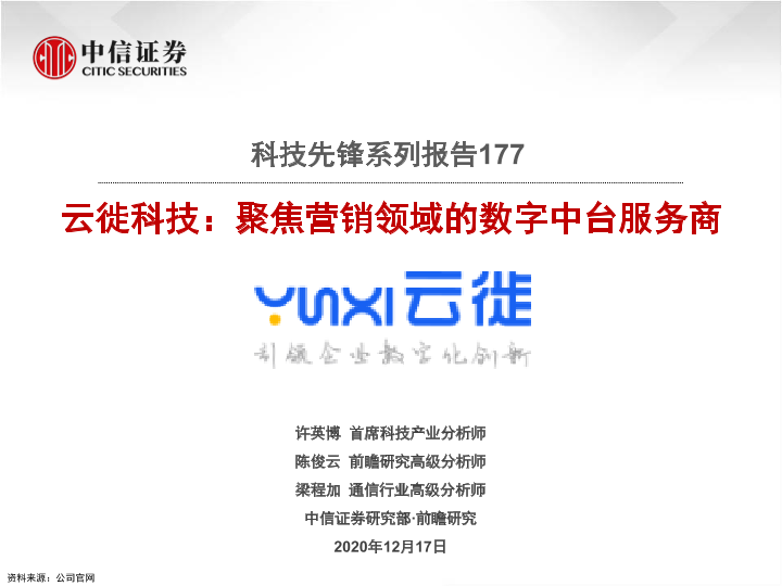 【中信证券】【20201217】云徙科技:聚焦营销领域的数字中台服务商-28页