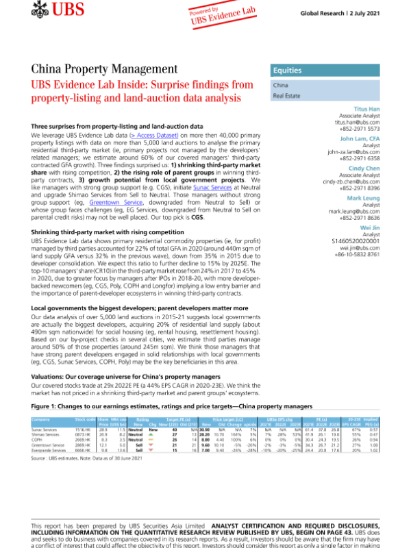 【瑞银(UBS)】【20210702】瑞银-中国房地产行业-房地产上市和土地拍卖数据分析的意外发现-50页