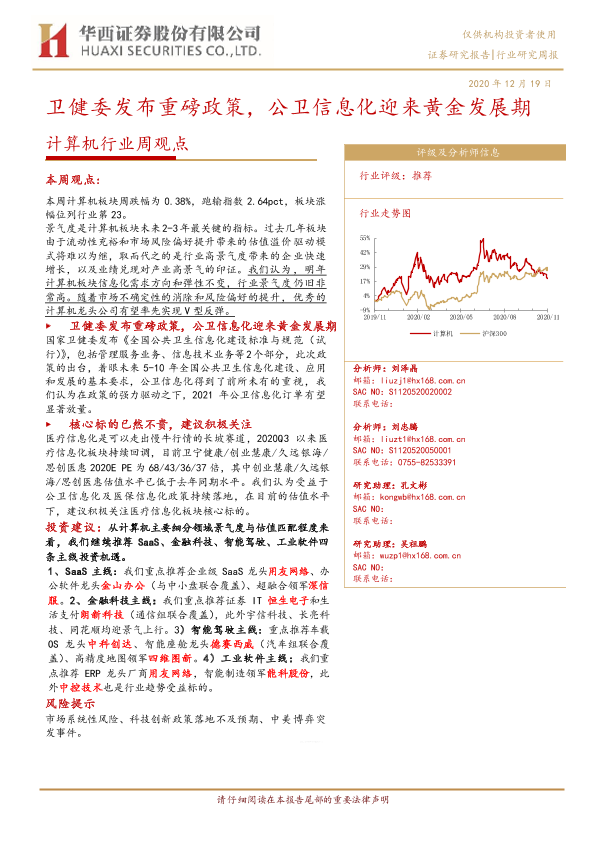 【华西证券】【20201219】计算机行业周观点:卫健委发布重磅政策,公卫信息化迎来黄金发展期-19页