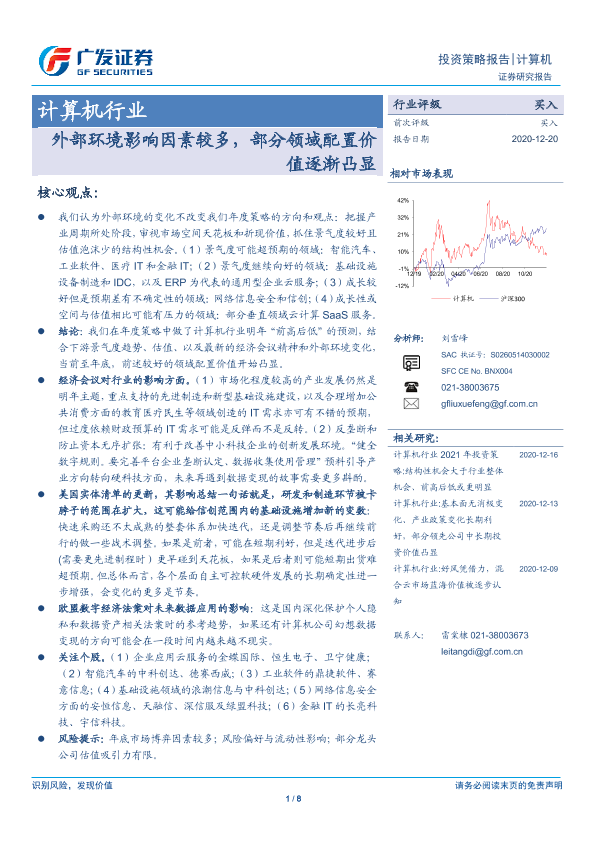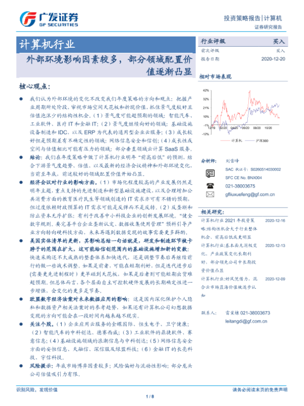 【广发证券】【20201220】20201220-广发证券-计算机行业投资策略报告:外部环境影响因素较多,部分领域配置价值逐渐凸显-8页