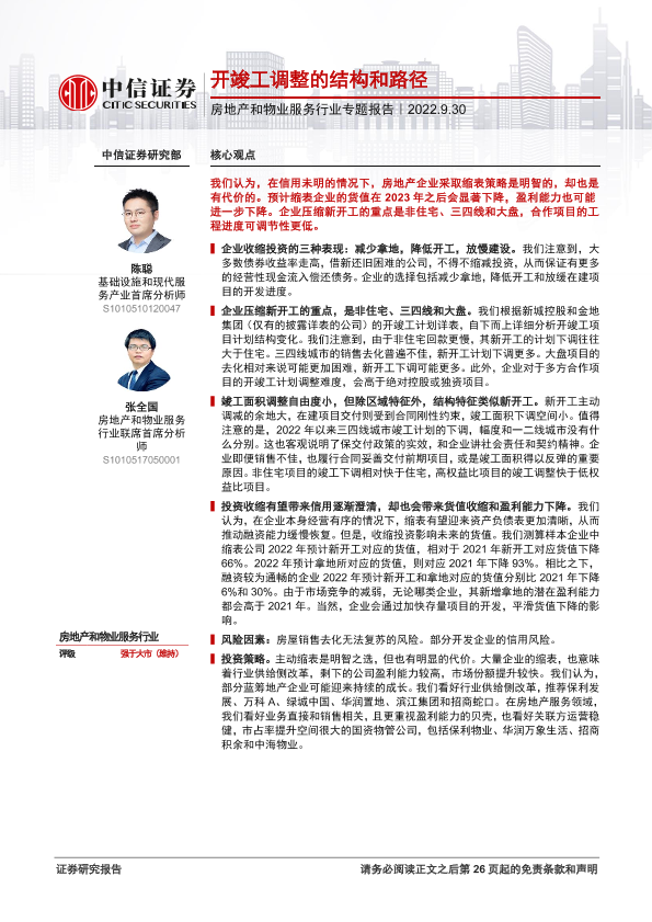 【中信证券】【20220930】房地产和物业服务行业专题报告:开竣工调整的结构和路径-27页