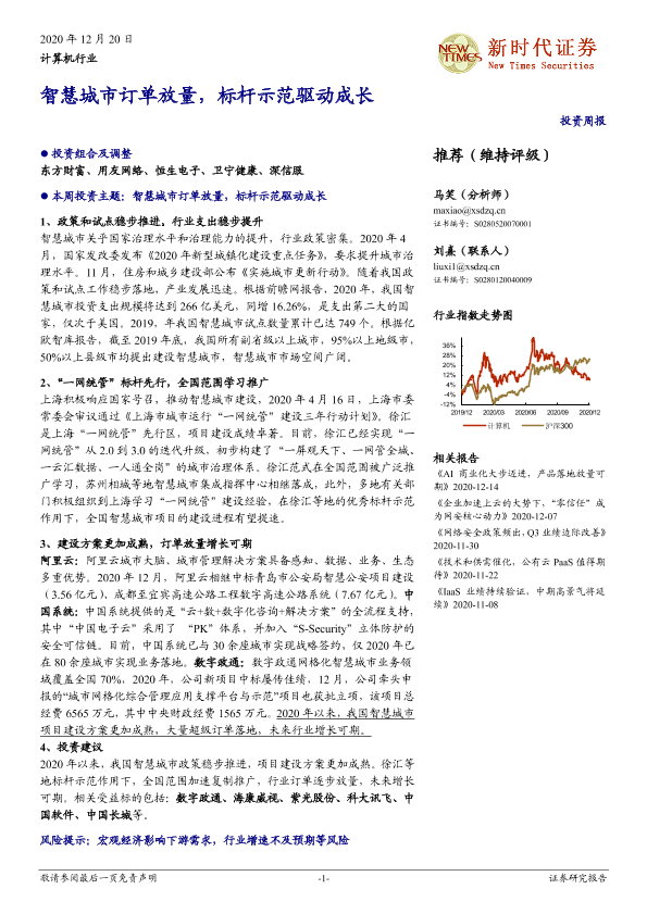 【新时代证券】【20201220】计算机行业投资周报:智慧城市订单放量,标杆示范驱动成长-19页