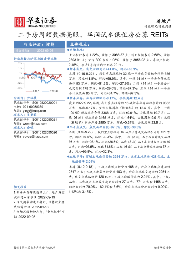【华安证券】【20220926】房地产行业周报:二手房周频数据亮眼,华润试水保租房公募REITs-20页