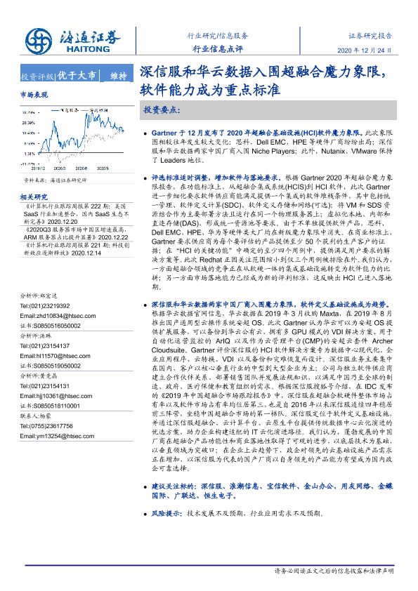 【海通证券】【20201224】信息服务行业信息点评:深信服和华云数据入围超融合魔力象限,软件能力成为重点标准-2页