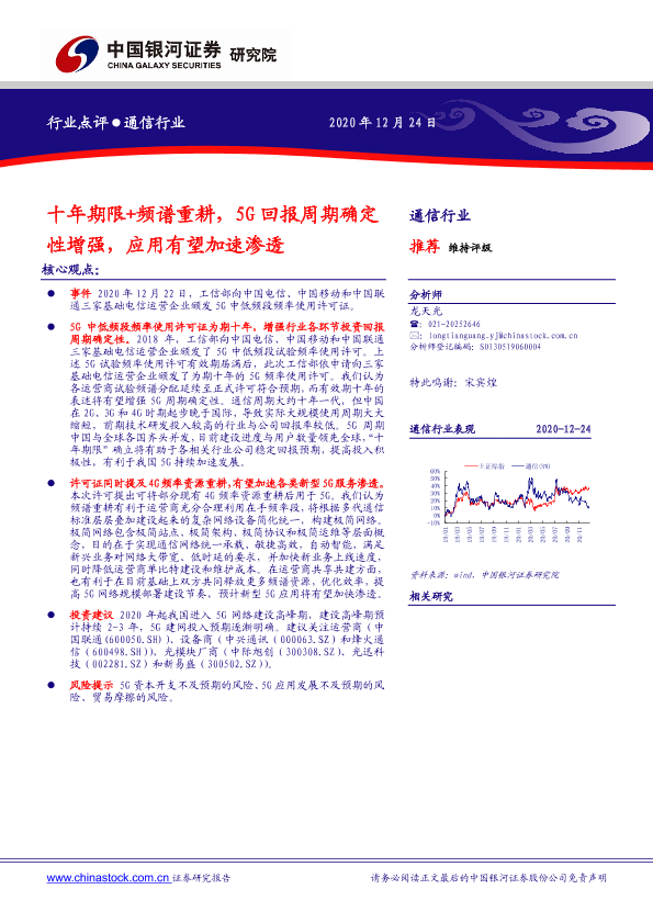 【银河证券】【20201224】通信行业:十年期限+频谱重耕,5G回报周期确定性增强,应用有望加速渗透-2页