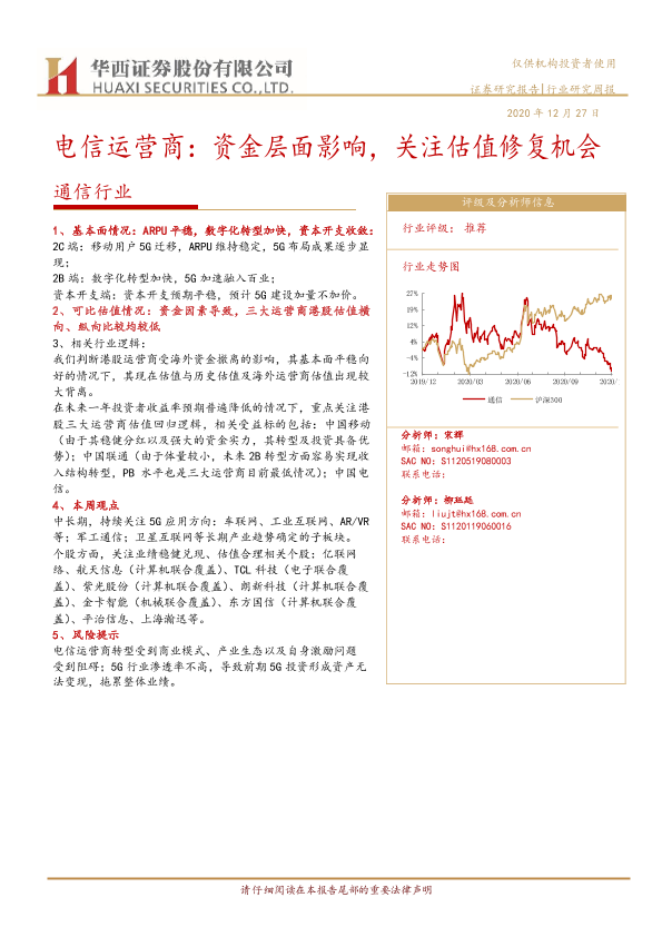 【华西证券】【20201227】20201227-华西证券-通信行业行业研究周报:电信运营商:资金层面影响,关注估值修复机会-10页