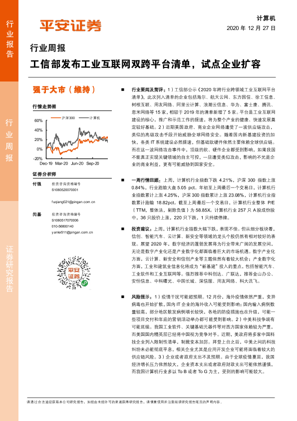 【平安证券】【20201227】20201227-平安证券-计算机行业周报:工信部发布工业互联网双跨平台清单,试点企业扩容-6页