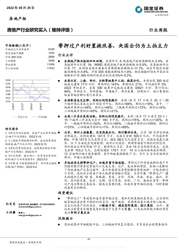 【国金证券】【20220925】房地产行业研究:带押过户利好置换改善,央国企仍为土拍主力-19页