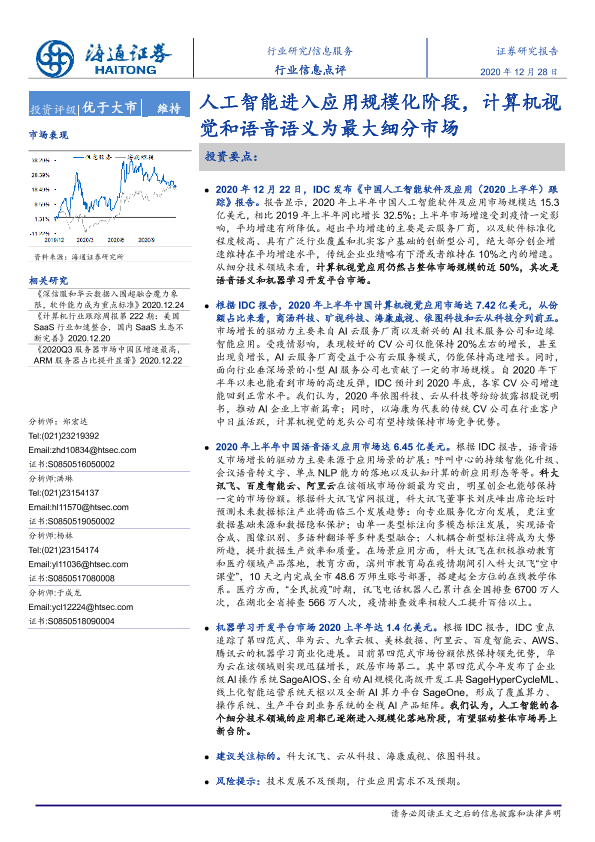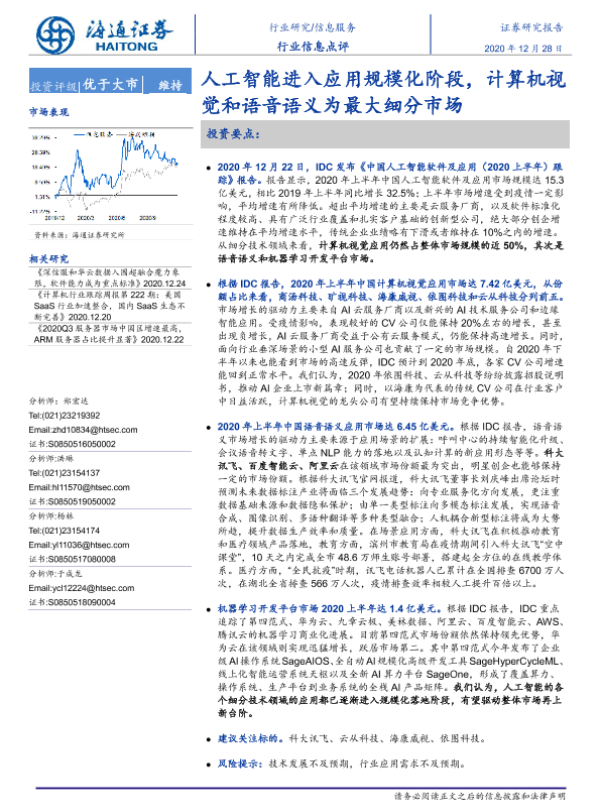 【海通证券】【20201228】信息服务行业信息点评:人工智能进入应用规模化阶段,计算机视觉和语音语义为最大细分市场-2页