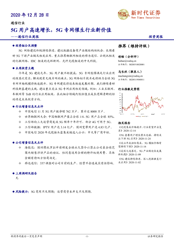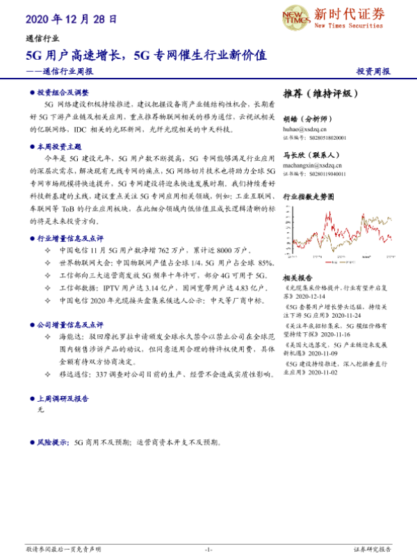 【新时代证券】【20201228】通信行业周报:5G用户高速增长,5G专网催生行业新价值-17页
