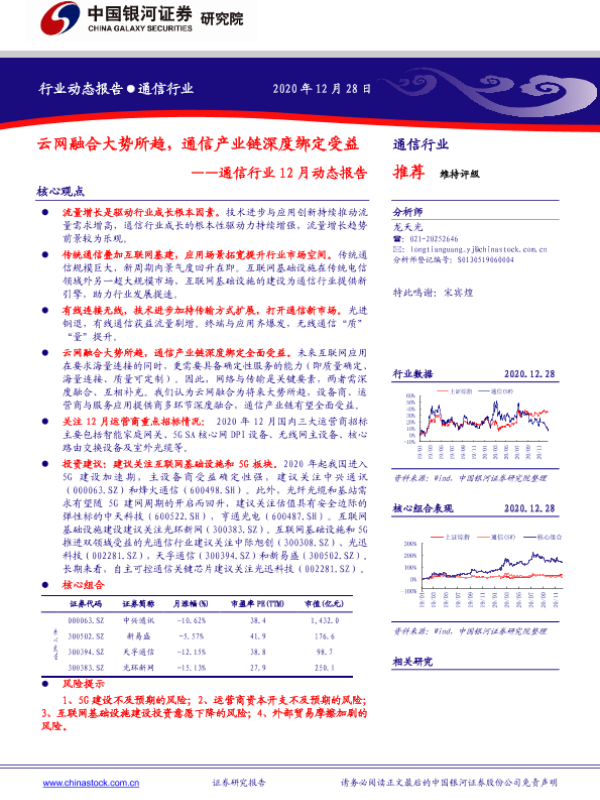 【银河证券】【20201228】通信行业12月动态报告:云网融合大势所趋,通信产业链深度绑定受益-30页