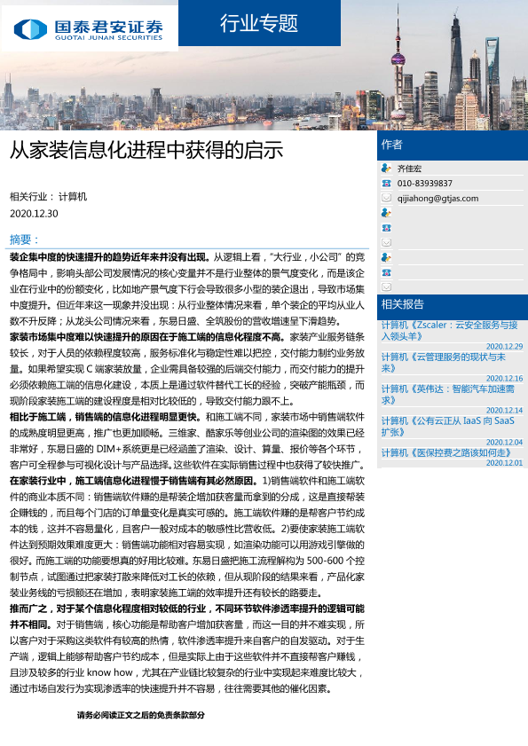 【国泰君安证券】【20201230】20201230-国泰君安-计算机行业专题:从家装信息化进程中获得的启示-7页