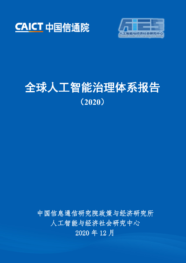 【中国信息通信研究院政策与经济研究所】【2020】全球人工智能治理体系报告-30页
