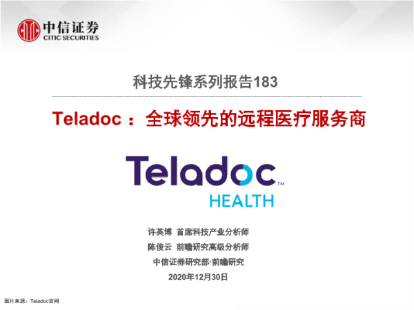 【中信证券】【20201230】20201230-中信证券-科技先锋系列报告183:Teladoc:全球领先的远程医疗服务商-20页