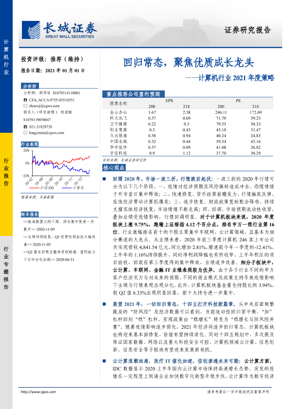 【长城证券】【20210101】计算机行业2021年度策略:回归常态,聚焦优质成长龙头-31页