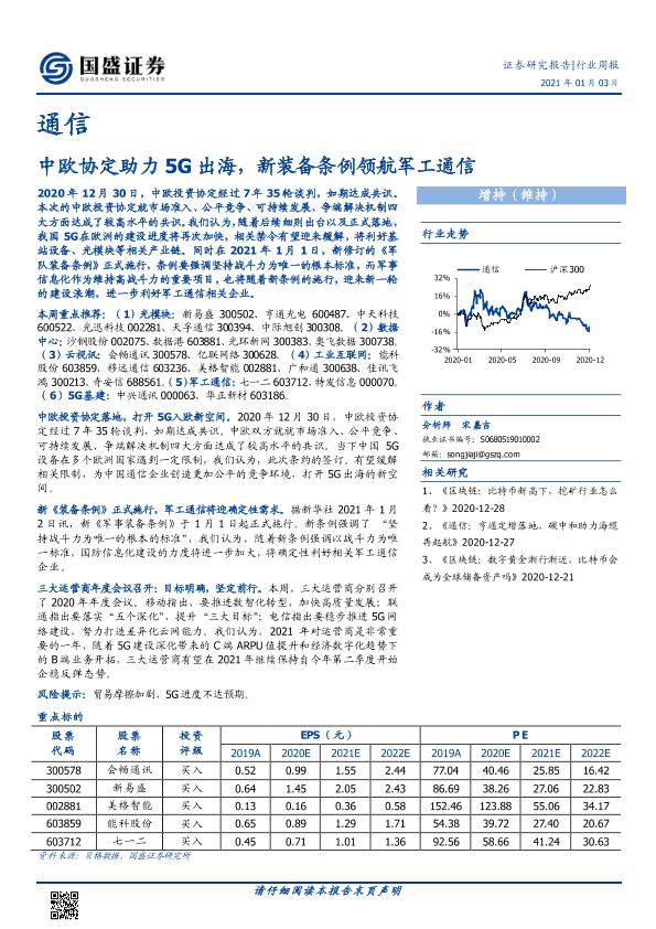 【国盛证券】【20210103】20210103-国盛证券-通信行业周报:中欧协定助力5G出海,新装备条例领航军工通信-16页
