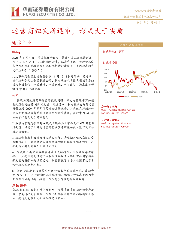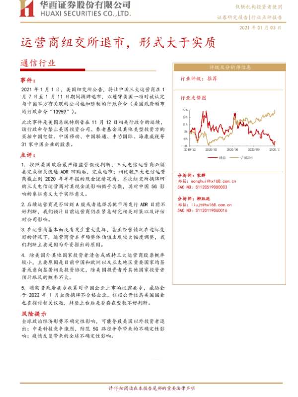【华西证券】【20210103】通信行业:运营商纽交所退市,形式大于实质-6页