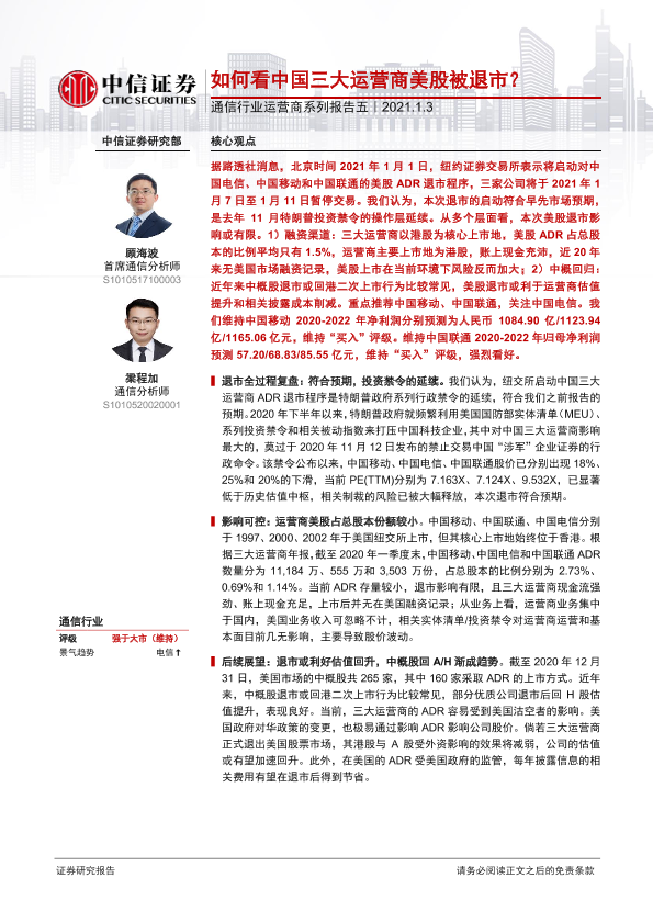 【中信证券】【20210103】如何看中国三大运营商美股被退市?-12页