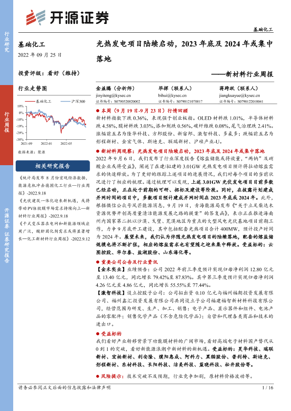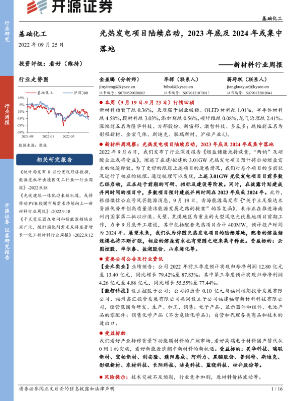 【开源证券】【20220925】新材料行业周报:光热发电项目陆续启动,2023年底及2024年或集中落地-16页