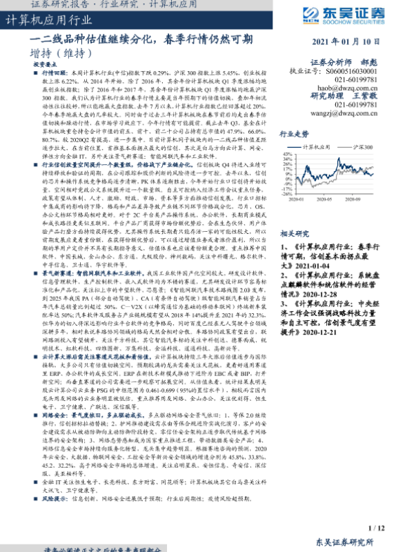 【东吴证券】【20210110】计算机应用行业:一二线品种估值继续分化,春季行情仍然可期-12页
