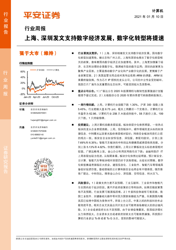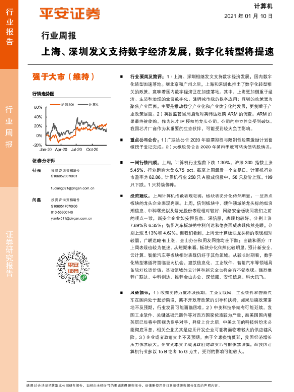 【平安证券】【20210110】计算机行业周报:上海、深圳发文支持数字经济发展,数字化转型将提速-6页