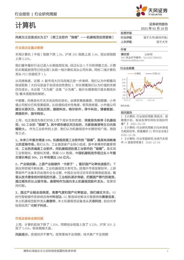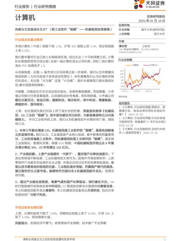 【天风证券】【20210110】20210110-天风证券-计算机行业研究周报:风格为王还是成长为王?(附工业软件“眼睛”——机器视觉投资逻辑)-7页