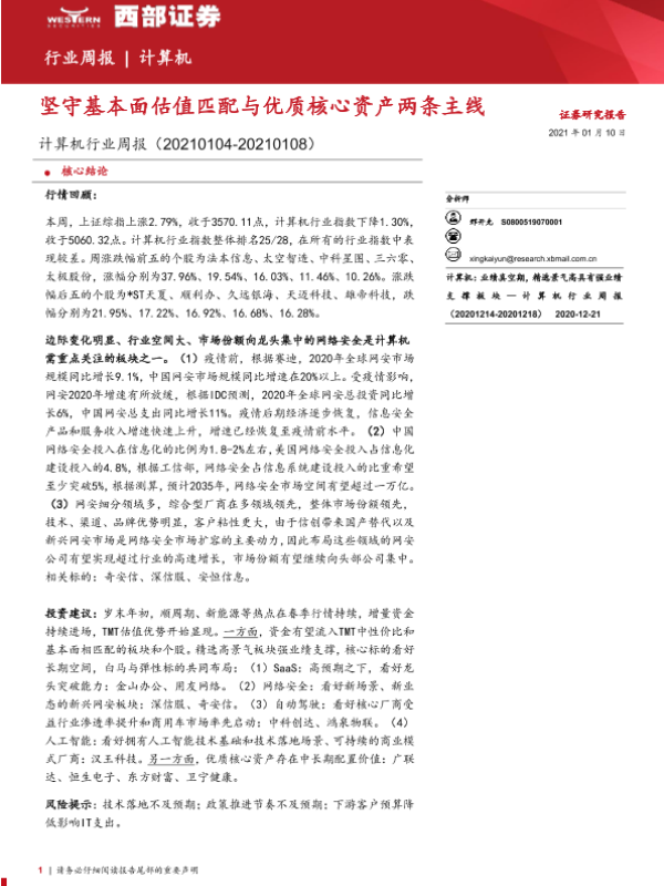 【西部证券】【20210110】20210110-西部证券-计算机行业周报:坚守基本面估值匹配与优质核心资产两条主线-16页