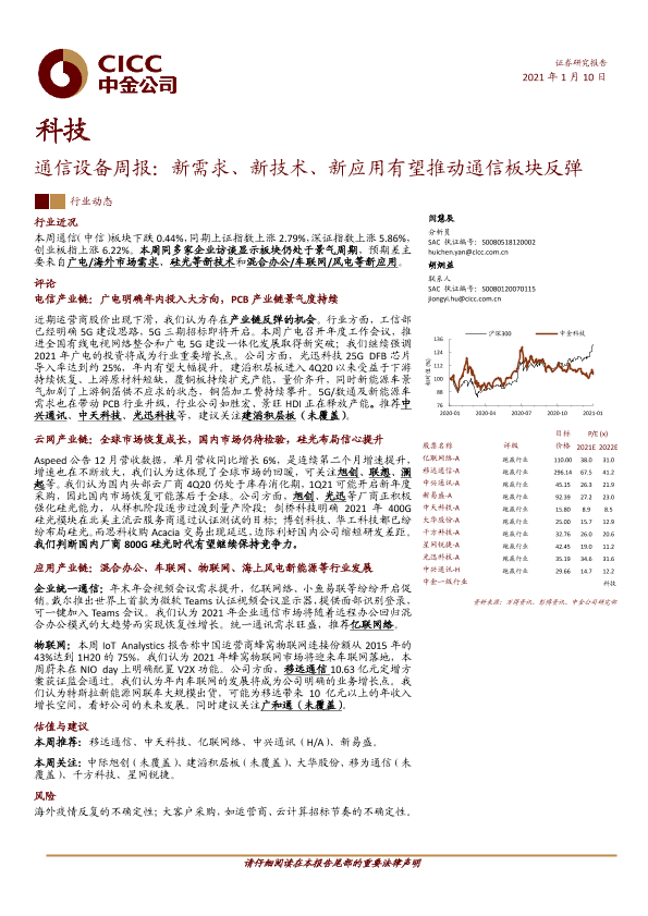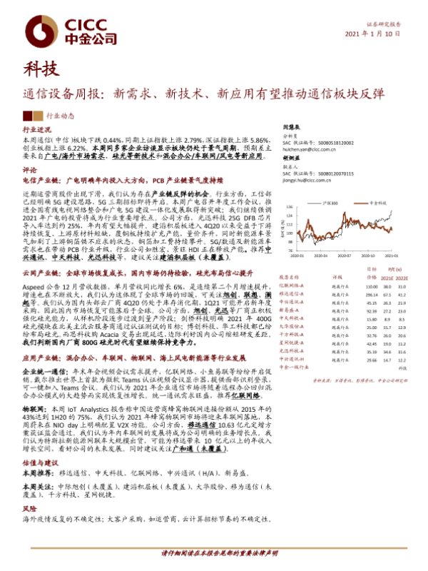 【中金公司】【20210110】通信设备周报:新需求、新技术、新应用有望推动通信板块反弹-8页