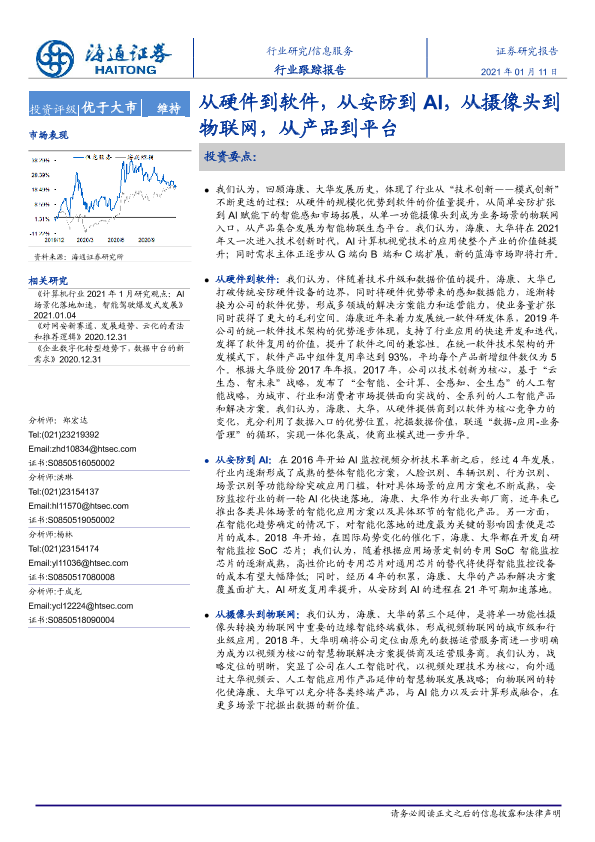 【海通证券】【20210111】信息服务行业跟踪报告:从硬件到软件,从安防到AI,从摄像头到物联网,从产品到平台-3页