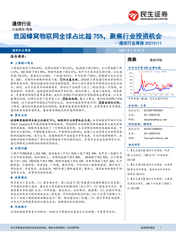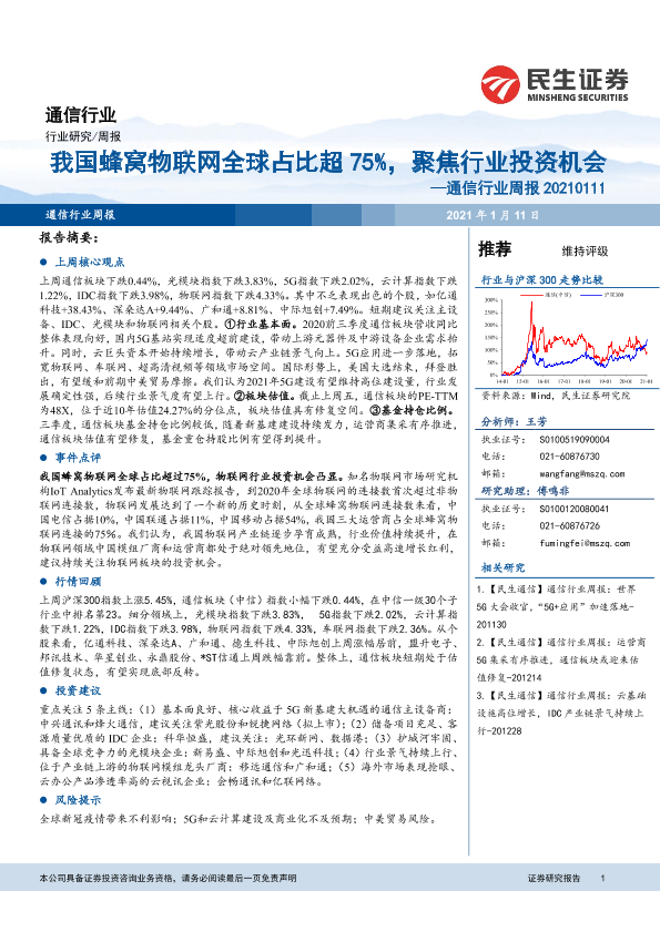 【民生证券】【20210111】20210111-民生证券-通信行业周报:我国蜂窝物联网全球占比超75%,聚焦行业投资机会-15页