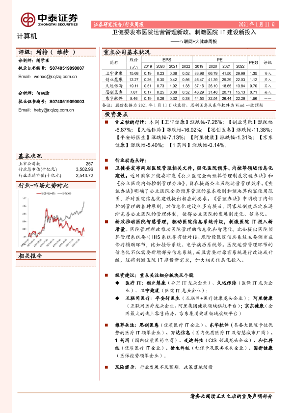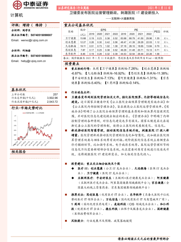 【中泰证券】【20210111】互联网+大健康周报:卫健委发布医院运营管理新政,刺激医院IT建设新投入-9页