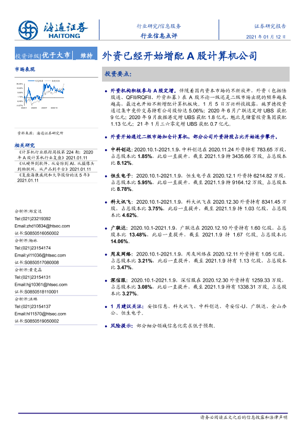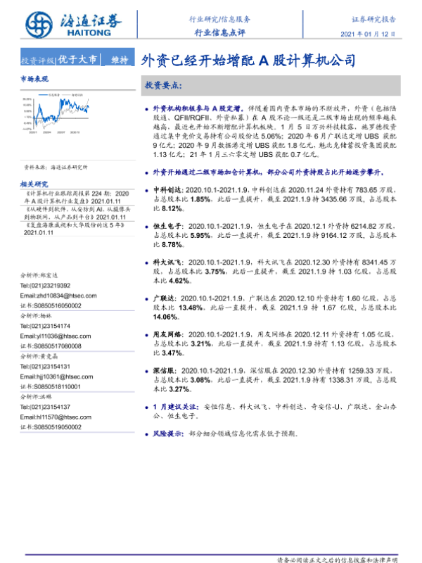 【海通证券】【20210112】信息服务行业信息点评:外资已经开始增配A股计算机公司-2页