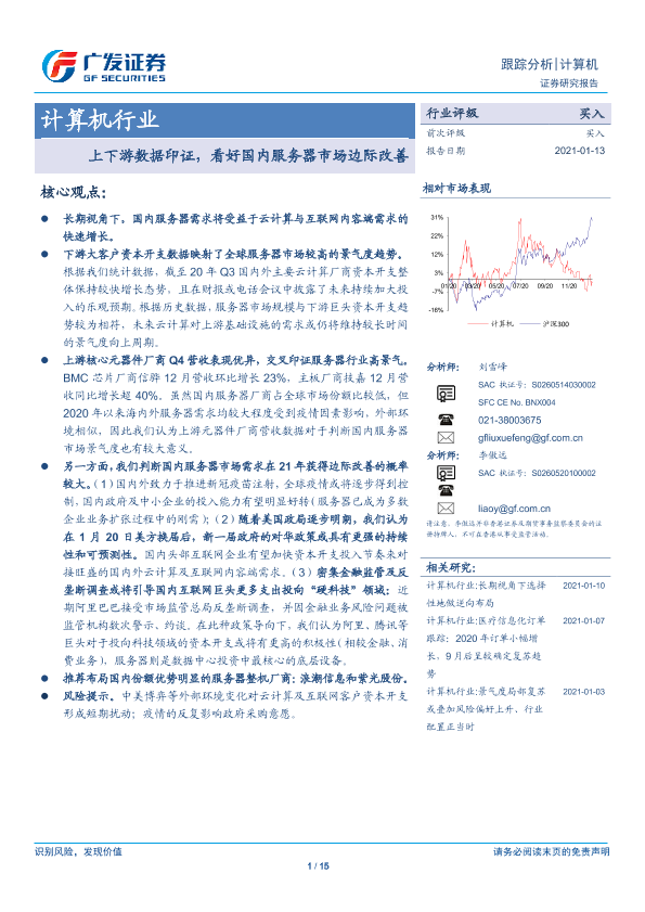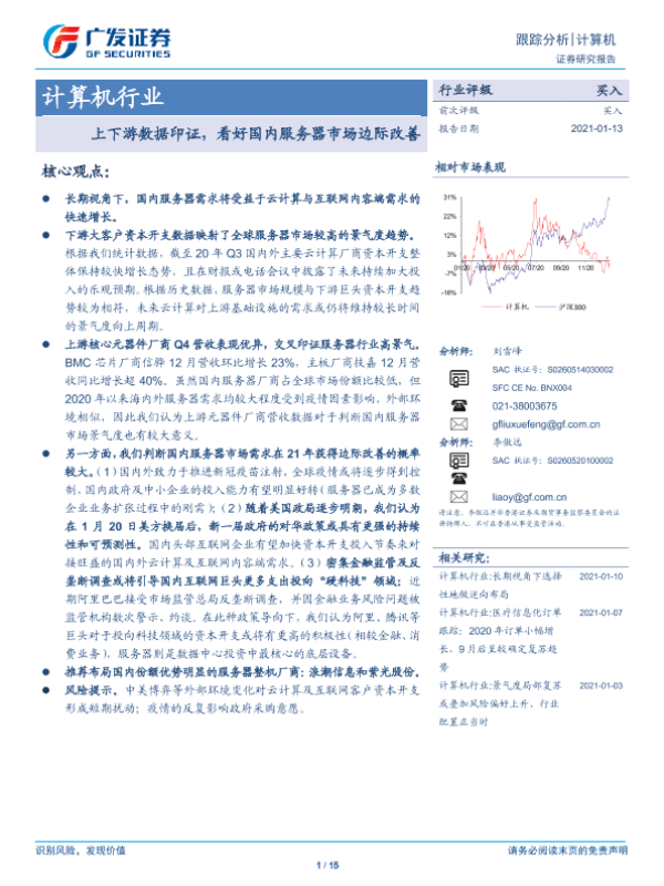 【广发证券】【20210113】计算机行业:上下游数据印证,看好国内服务器市场边际改善-15页