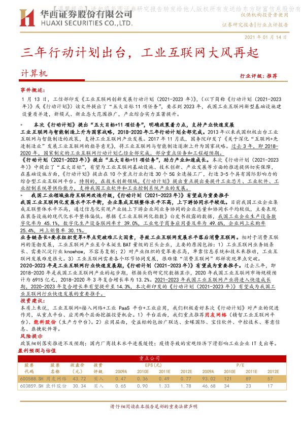【华西证券】【20210114】三年行动计划出台,工业互联网大风再起-4页