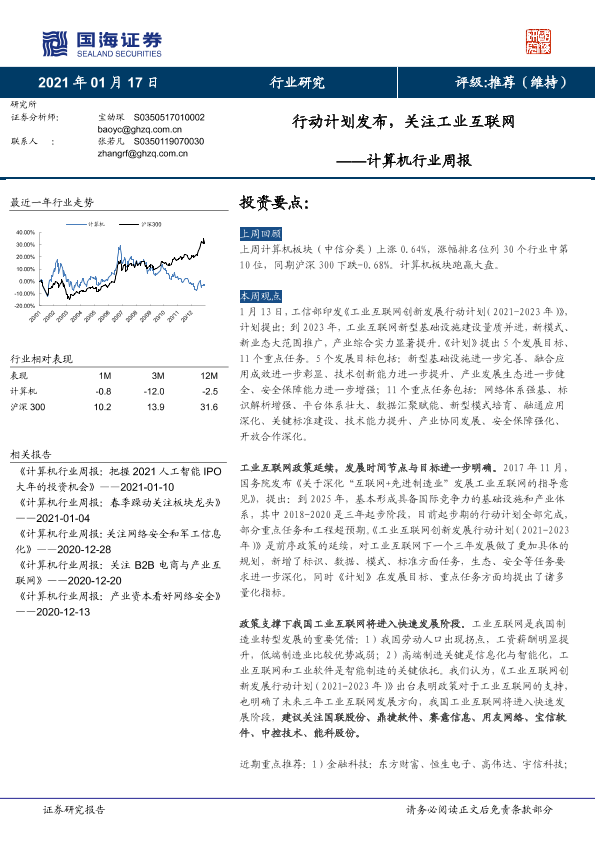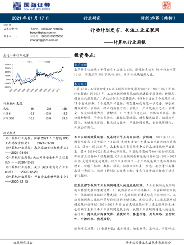 【国海证券】【20210117】计算机行业周报:行动计划发布,关注工业互联网-11页