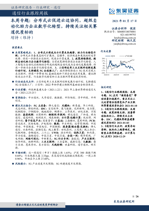 【东吴证券】【20210117】通信行业跟踪周报:本周专题:分布式云促进云边协同,超级自动化助力企业数字化转型,持续关注相关赛道优质标的-26页