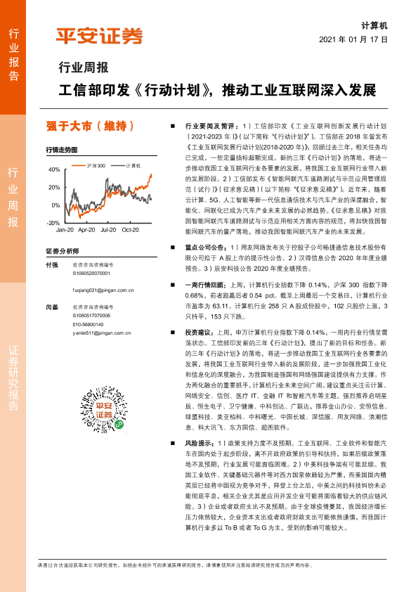 【平安证券】【20210117】计算机行业周报:工信部印发《行动计划》,推动工业互联网深入发展-5页