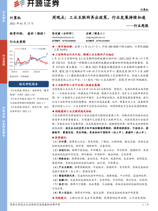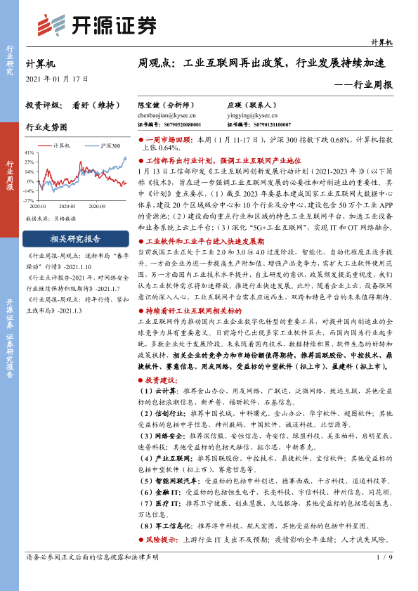 【开源证券】【20210117】20210117-开源证券-计算机行业周报:周观点:工业互联网再出政策,行业发展持续加速-9页