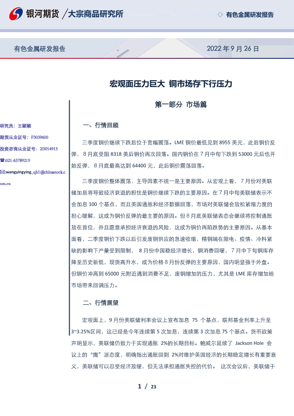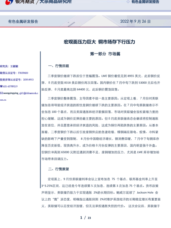 【银河期货】【20220926】有色金属研发报告:宏观面压力巨大,铜市场存下行压力-23页