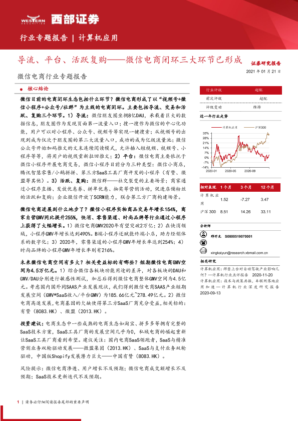 【西部证券】【20210121】导流、平台、活跃复购——微信电商闭环三大环节已形成-14页