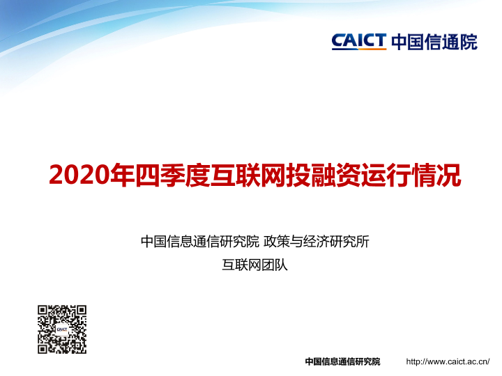 【中国信息通信研究院】【20210121】2020年四季度互联网投融资运行情况-19页
