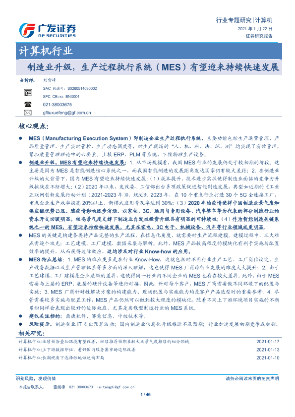 【广发证券】【20210122】制造业升级,生产过程执行系统(MES)有望迎来持续快速发展-46页