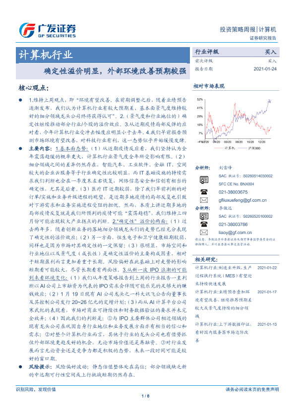【广发证券】【20210124】20210124-广发证券-计算机行业投资策略周报:确定性溢价明显,外部环境改善预期较强-8页