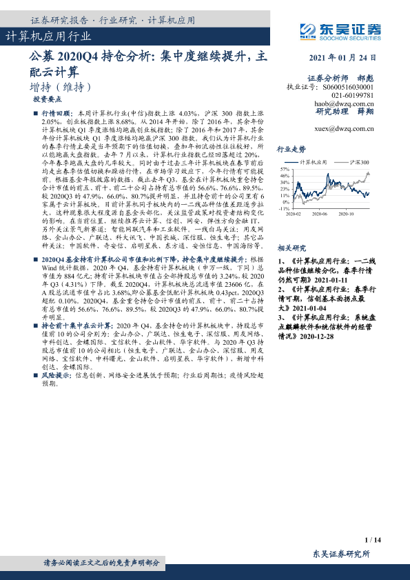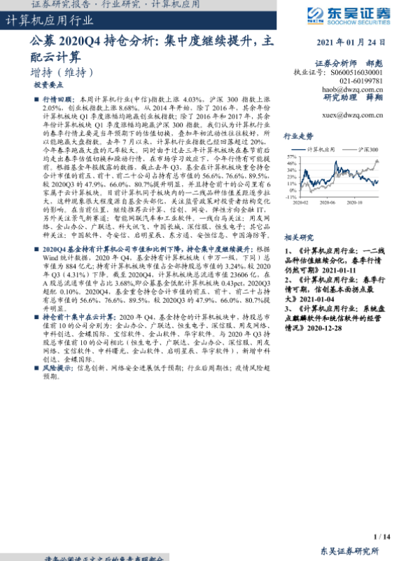 【东吴证券】【20210124】计算机应用行业:公募2020Q4持仓分析:集中度继续提升,主配云计算-14页