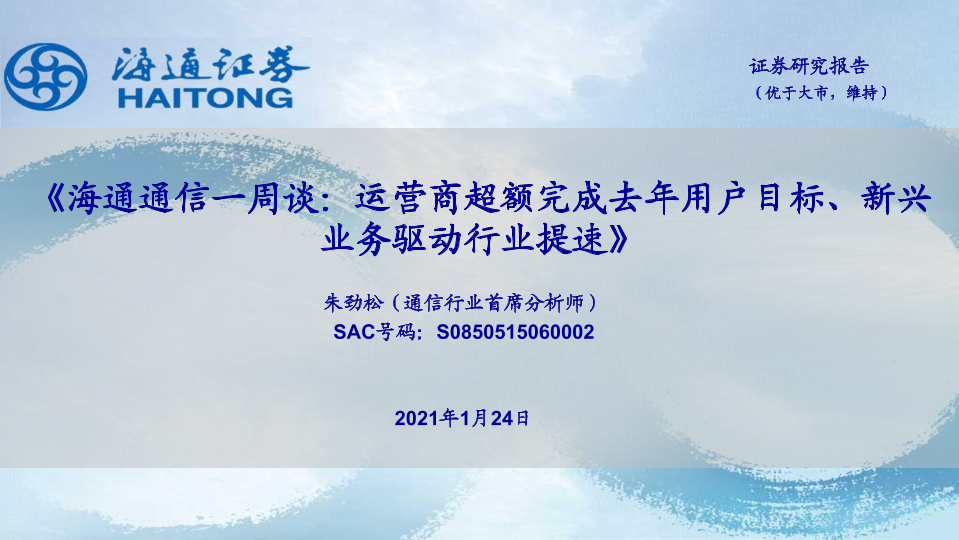 【海通证券】【20210124】海通通信一周谈:运营商超额完成去年用户目标、新兴业务驱动行业提速-10页