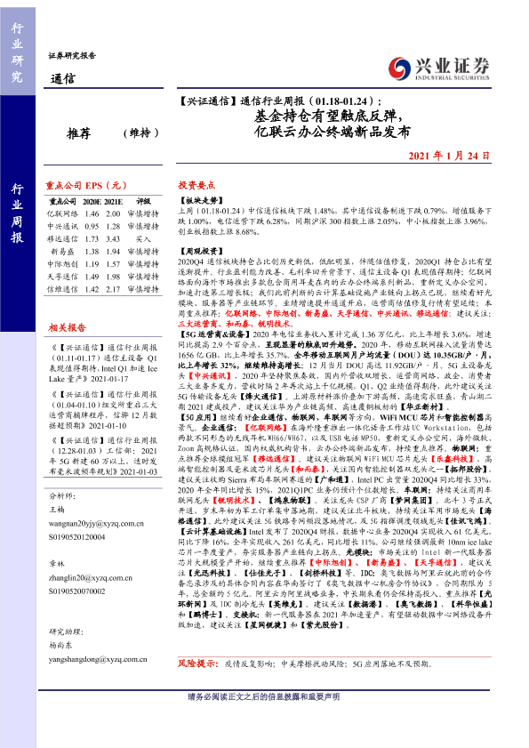 【兴业证券】【20210124】通信行业周报(01.18-01.24):基金持仓有望触底反弹,亿联云办公终端新品发布-10页