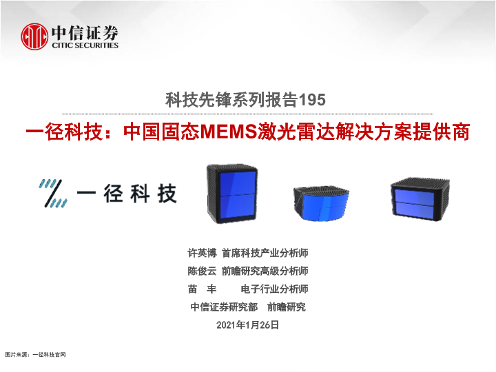 【中信证券】【20210126】一径科技:中国固态MEMS激光雷达解决方案提供商-26页