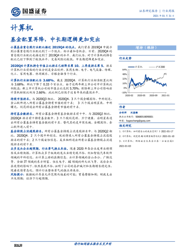 【国盛证券】【20210131】计算机行业周报:基金配置再降,中长期逻辑更加突出-9页