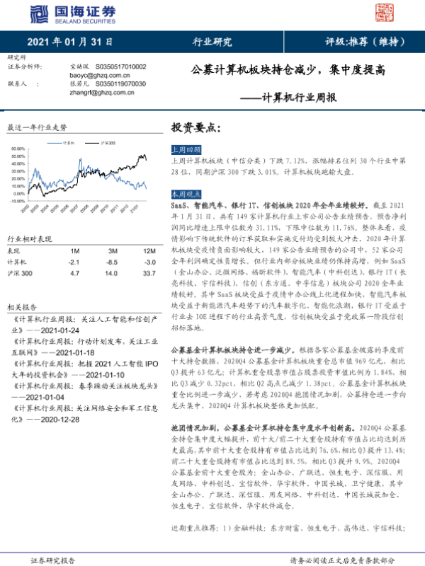 【国海证券】【20210131】20210131-国海证券-计算机行业周报:公募计算机板块持仓减少,集中度提高-20页
