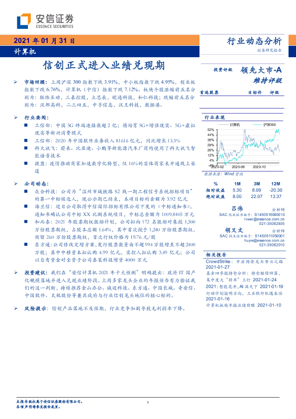 【安信证券】【20210131】计算机行业动态分析:信创正式进入业绩兑现期-22页